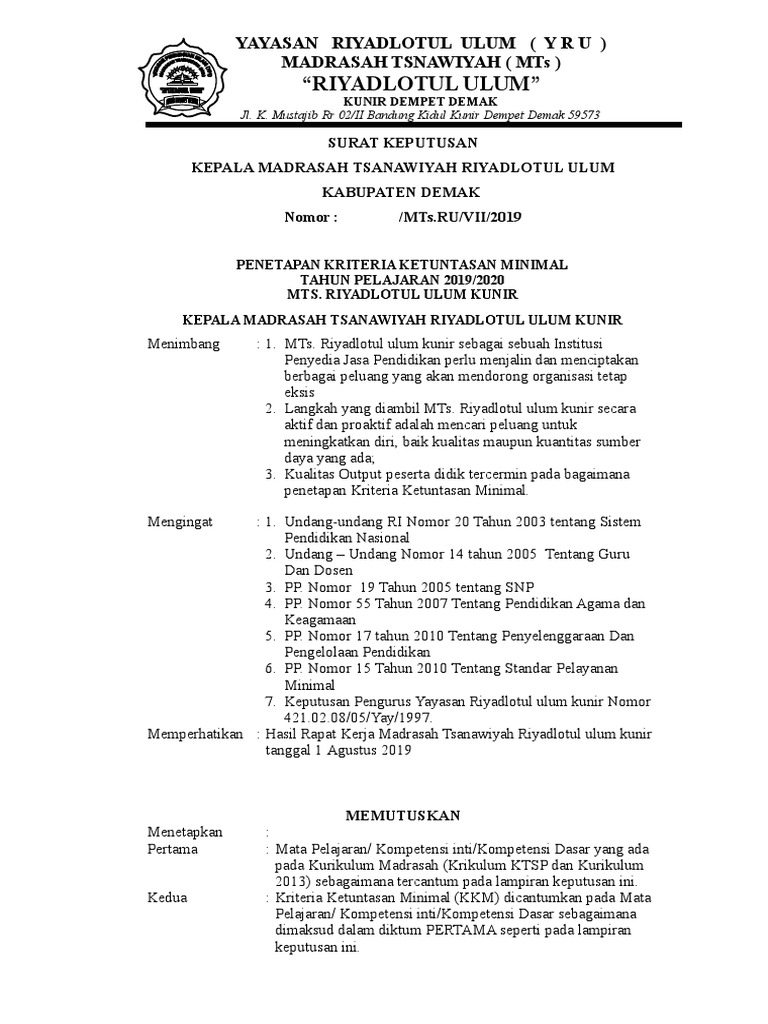 Prinsip penetapan penetapan kriteria ketuntasan minimal perlu penetapan kriteria ketuntasan minimal (kkm). Perangkat kurikulum 2013 revisi berbagi kkm kurikulum 2013 sd kelas 2.doc update terbaru untuk guru dalam melengkapi materi administrasi k13, perangkat pembelajaran k13 sd, proses kbm, recana pelaksanaan pembelajaran. Mekanisme penetapan penetapan kriteria ketuntasan minimal () a. Lintas minat kimia di kelas x ilmu tepat tanggal 25 nopember 1995, sk penegerian turun dengan no. Tidak hanya sk penetapan kkm, tapi juga harus dilengkapi dengan berita acara penetapan kkm dan juga daftar hadir untuk melengkapi administrasi wajib dalam suatu acara penetapan.